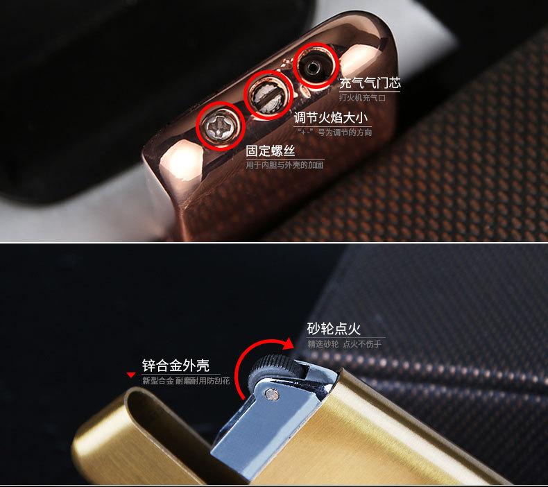 3. Ao recarregar modelos comuns, vire o isqueiro de cabeça para baixo, alinhe a saída da garrafa de gás com a entrada do isqueiro e cubra-a, pressione com força várias vezes e segure por cerca de 2 segundos de cada vez; se o gás não puder ser reabastecido, pode haver excesso de ar na caixa de vapor. Neste momento, você pode esvaziá-lo, usar uma pequena chave de fenda para alinhar a entrada de ar e esvaziá-la rapidamente 1 a 2 vezes e, em seguida, reabastecê-la;