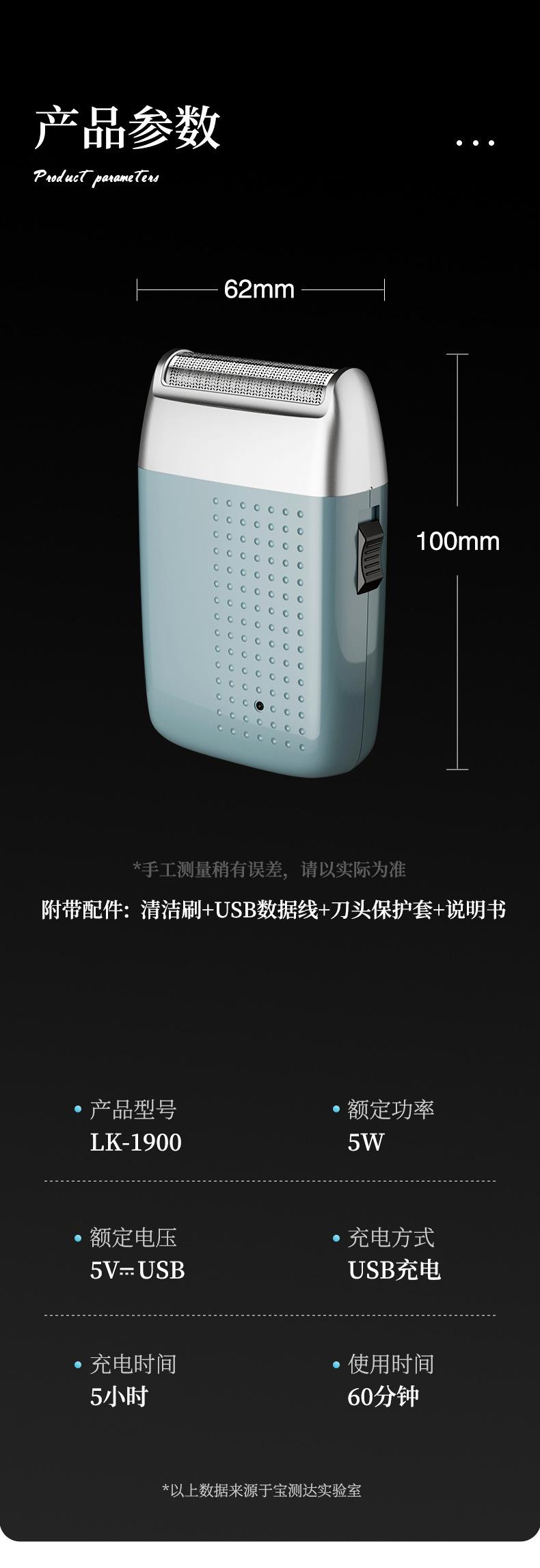 Acessórios do produto: host * 1/cabo de carregamento USB * 1/escova de limpeza * 1/instruções de embalagem em inglês * 1/capa de proteção da lâmina * 1