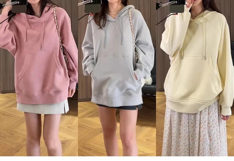 O bolso canguru na frente da peça tem costura elegante e uniforme