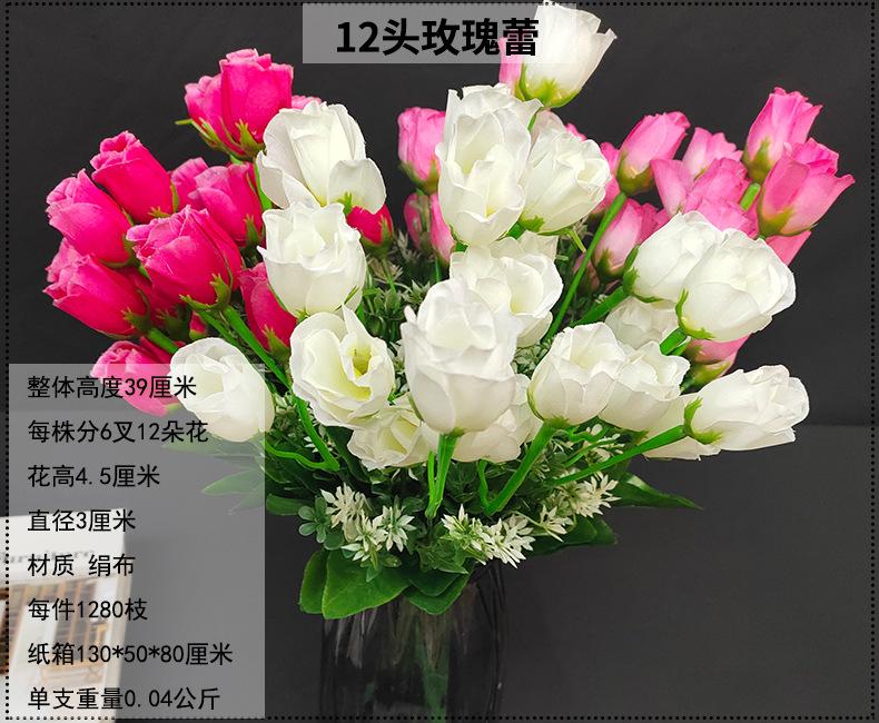 12 botões de rosa, altura total 39 cm, cada planta ramificada em 6 ramos, 12 flores, altura da flor 4,5 cm, diâmetro 3 cm, material pano de seda, 1280 hastes por peça, caixa 130*50*80 cm, peso único 0,04 kg