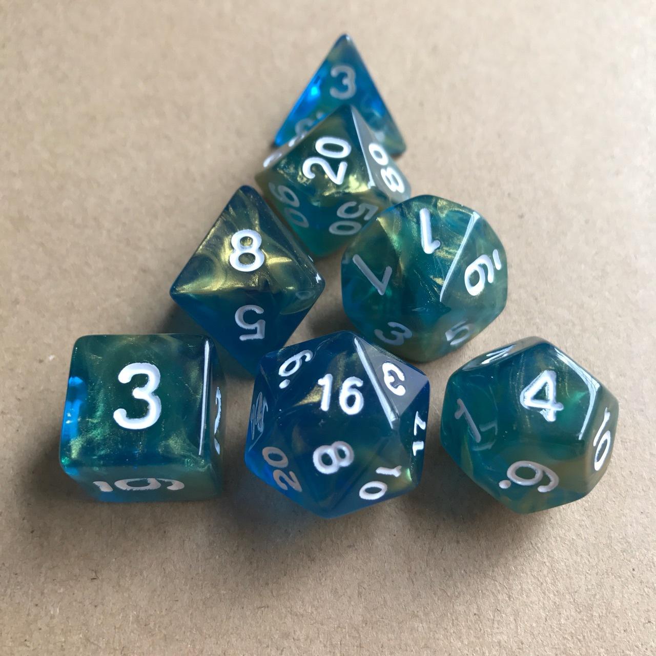 Nome: novos dados de jogo de tabuleiro de dados multifacetados de duas cores Dungeons and Dragons (7 peças em um conjunto)