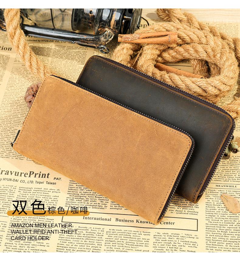 RFID anti-roubo escova carteira masculina versão coreana da primeira camada de couro de vaca bolsa longa bolsa para celular vendas diretas da fábrica 9043