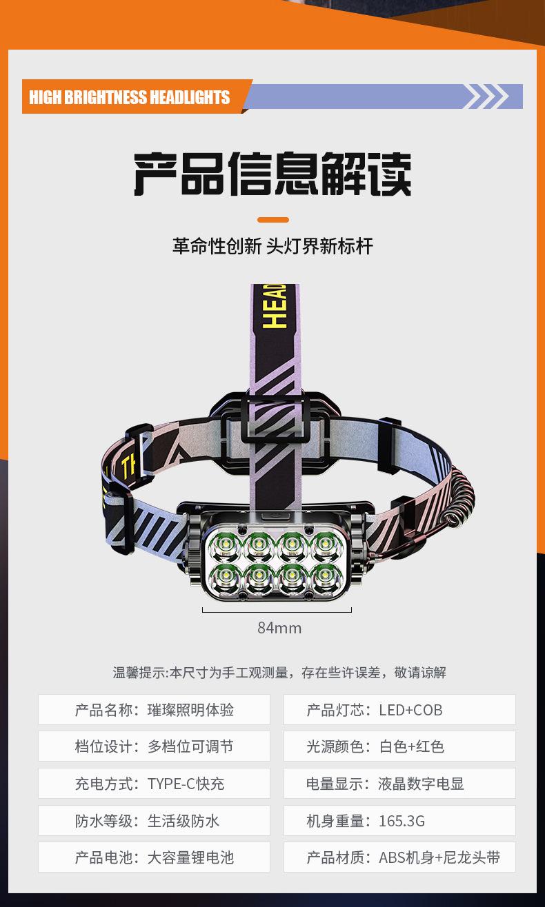 [Características do Produto]: Rotação dupla face, um lado LED farol alto + um lado COB holofote, bateria de polímero de lítio embutida, display digital LCD