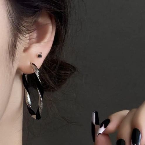 Brincos grandes de personalidade da moda, brincos grandes de nicho, pretos exagerados, de alto senso, temperamento europeu e americano, círculo