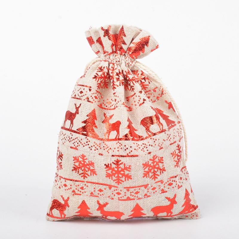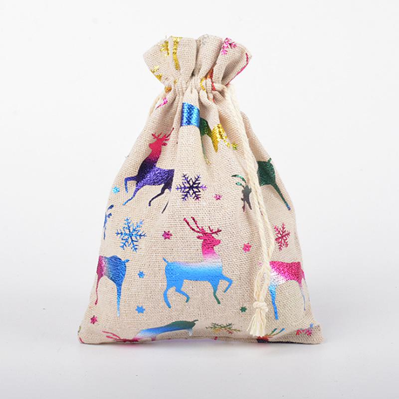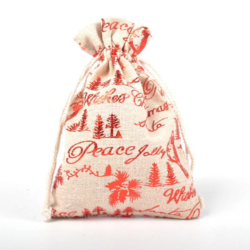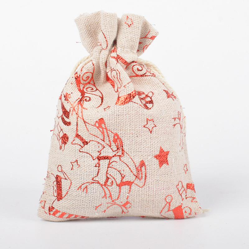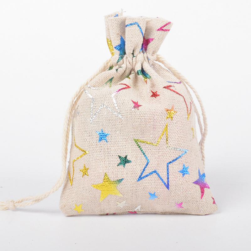 【Nome do produto】Saco com cordão de algodão e linho com estampa dourada