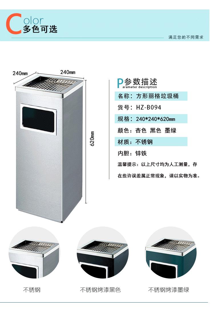 ![]() Lixeira quadrada com tampa basculante pintada Preço unitário: 180 yuans |