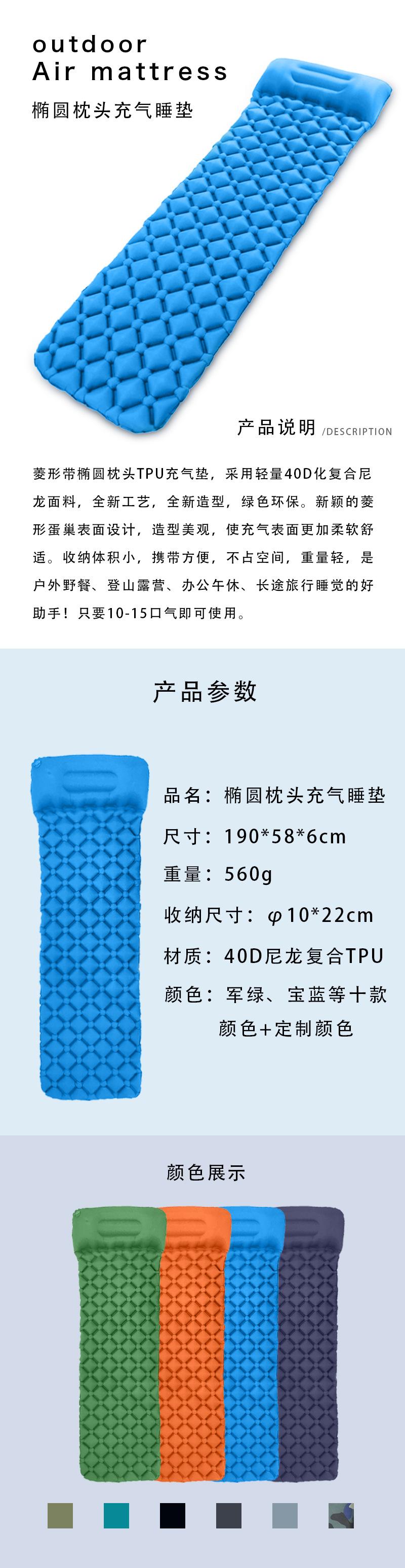 Características: Almofada de dormir confortável inflável com travesseiro, a altura do travesseiro é ergonomicamente projetada para proteger a coluna cervical; o tecido é respirável, elástico, resistente ao desgaste e antienvelhecimento;Sopre rapidamente por 10 a 15 respirações e está pronto para uso.
