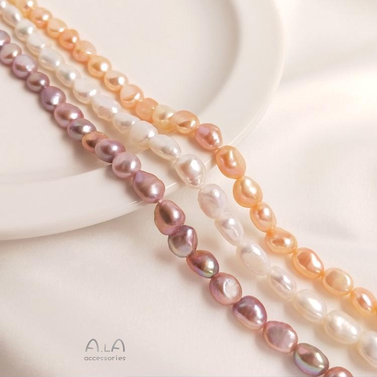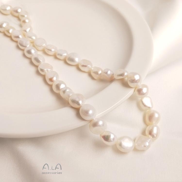 As pérolas semiacabadas têm cerca de 38 cm de comprimento