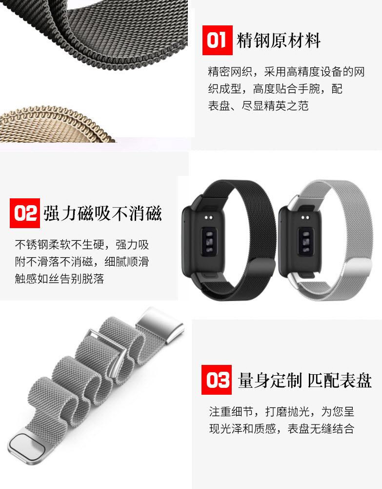 Adecuado para pulsera Xiaomi 7Pro Correa milanesa Correa magnética milanesa de metal de acero inoxidable