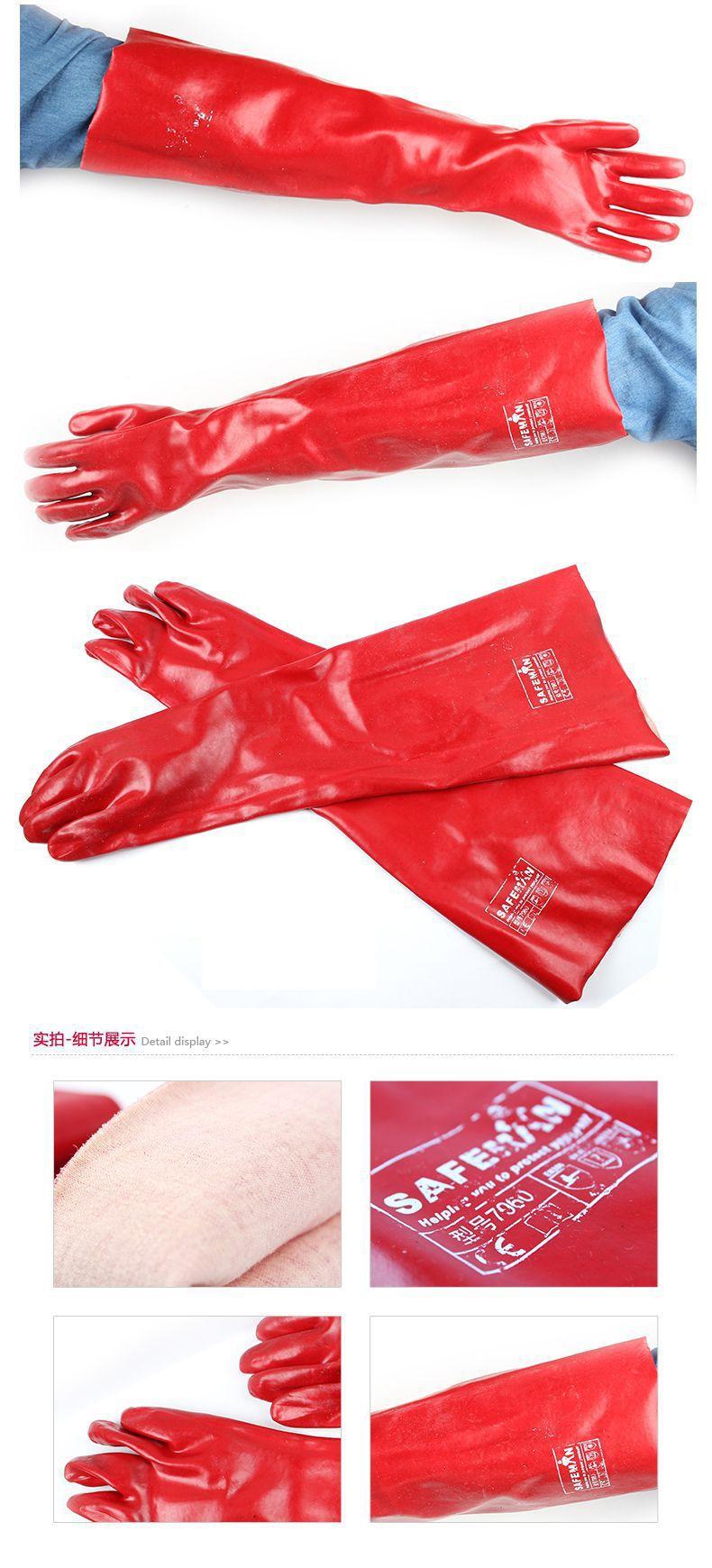 Compre Junyu 7935 vermelho PVC anti-químico resistente à mão alongado ácido e álcalis resistente a óleo resistente à prova d'água borracha mergulhando luvas de proteção química 35cm no atacado no Joom.pro