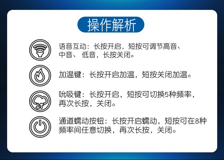 Acessórios internos: 1 tampa traseira, 1 tampa frontal (duas camadas), 1 tampa de copo, 1 placa de circuito, 1 placa de aquecimento, 1 tubo de suporte interno, 1 vibrador, 1 bateria, 1 gerador de som, 1 peça plástica de porta de carregamento, 4 parafusos , 1 bomba de ar, 1 válvula de ar, 2 tubos de ar