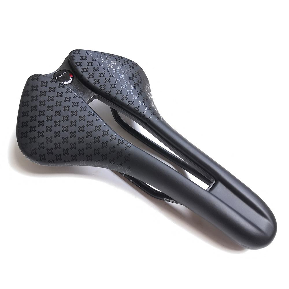 El sillín de bicicleta BALUGOE presenta un nuevo diseño ergonómico hueco. La carcasa inferior está hecha de fibra de carbono de nailon, de alta resistencia y capaz de soportar un peso adulto de 190 kg. La pista está hecha de acero cromado de 7 mm.