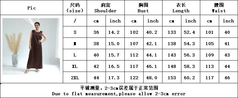 Tabela de tamanhos do vestido interno: