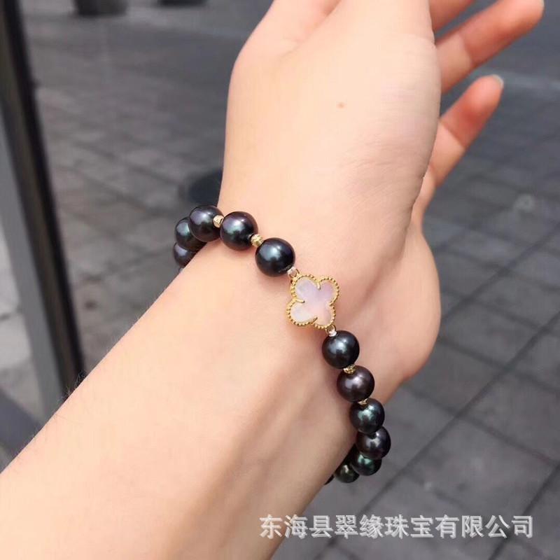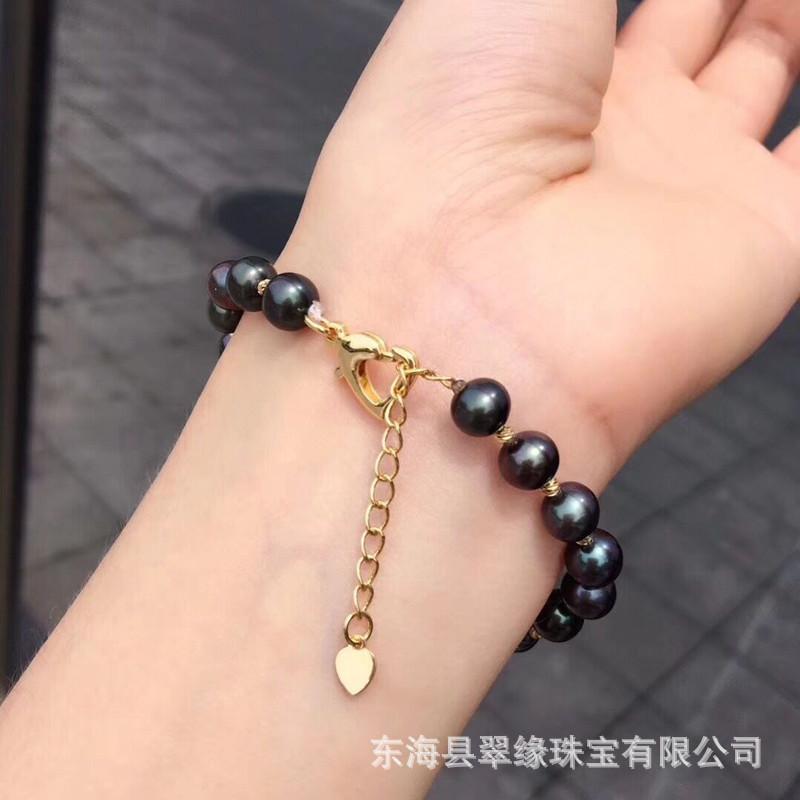 Pulseira redonda de pérola preta natural redonda 18k acessórios banhados a ouro pulseira ajustável joias femininas 7mm --- 8mm
