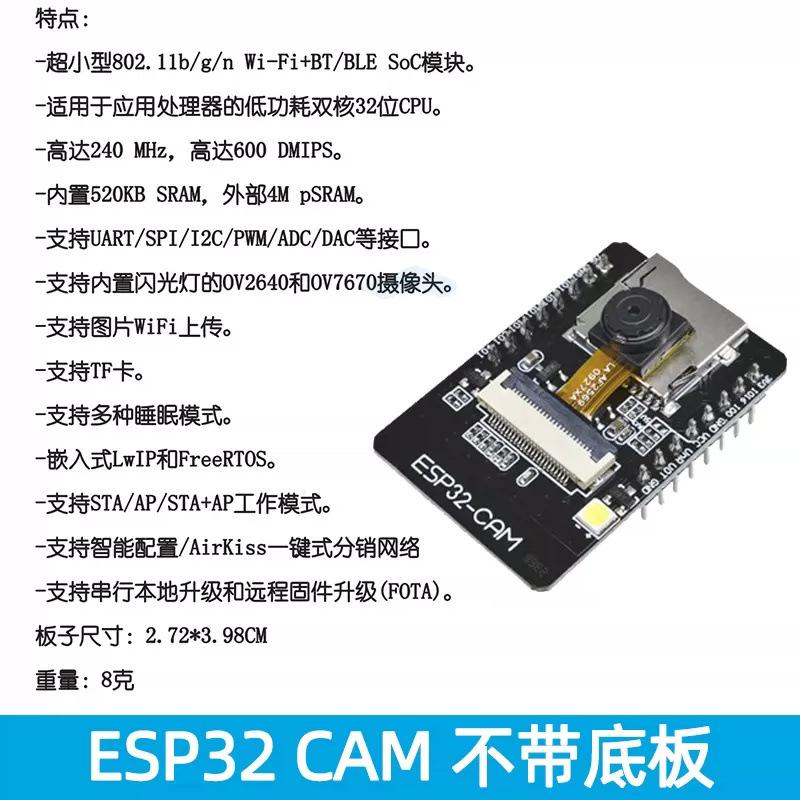La cámara está equipada con OV2640 (2 millones de píxeles) y OV5640 (5 millones de píxeles), OV3660 (3 millones de píxeles) y puede admitir el modo de visión nocturna opcional.;