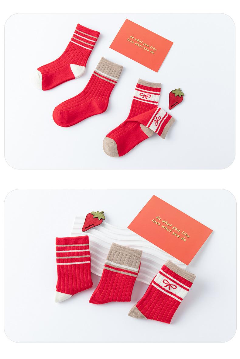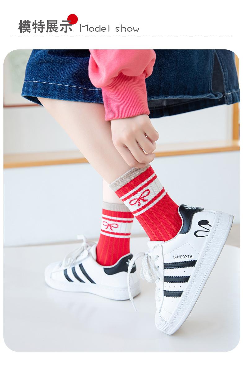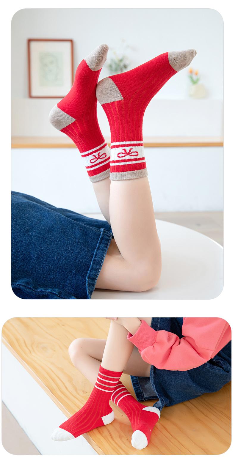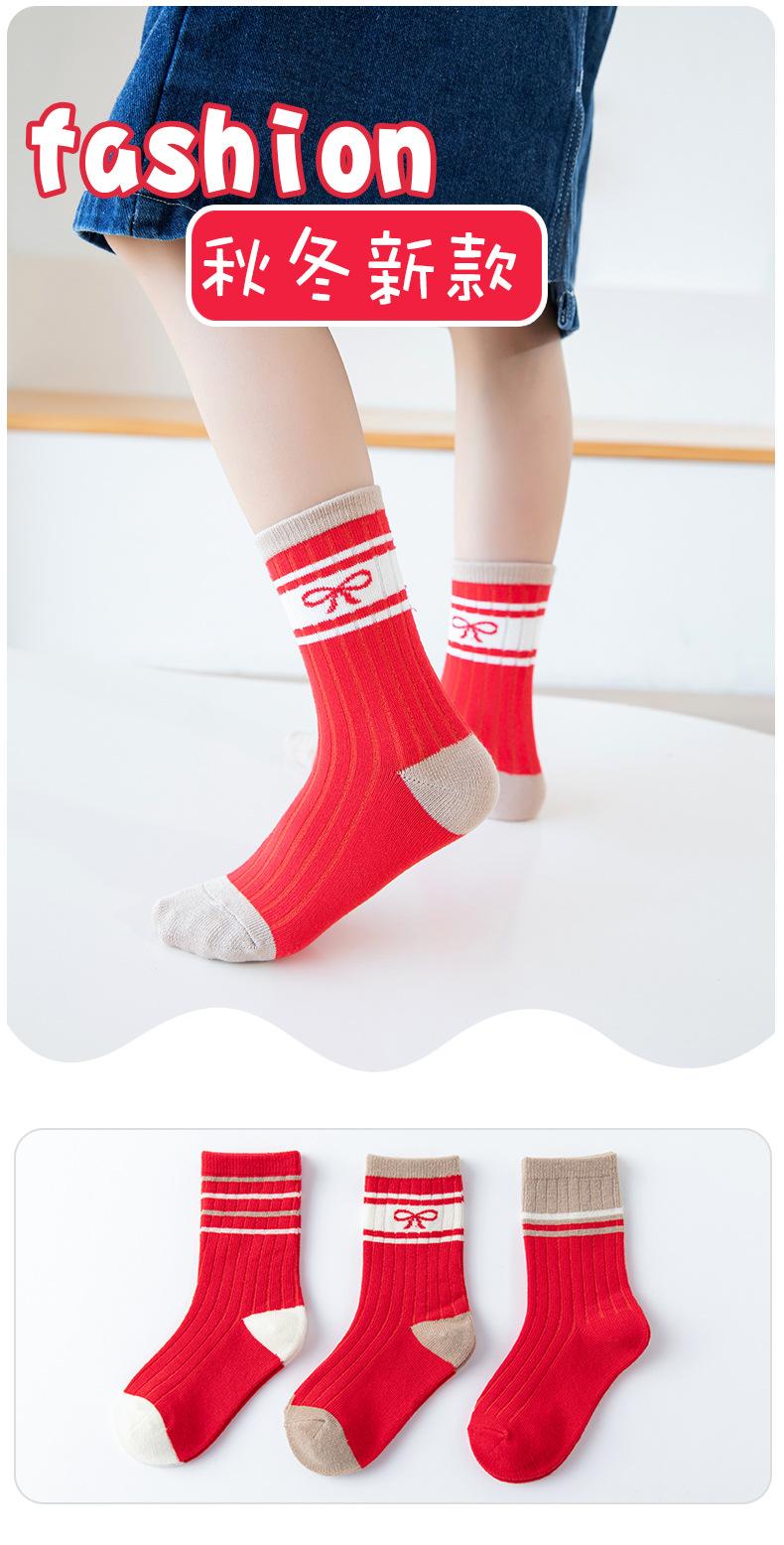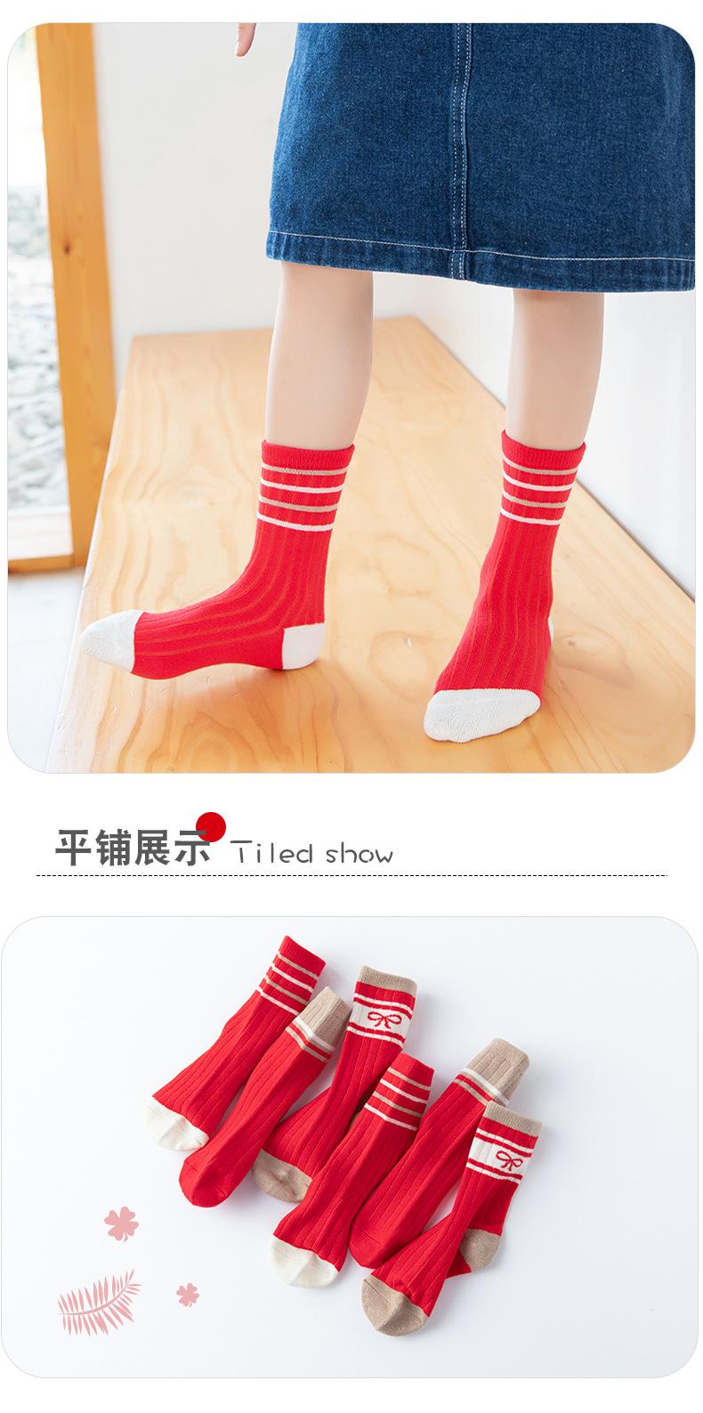 Meias de algodão infantis para meninos e meninas meias da sorte vermelhas estilo japonês meias infantis modernas médias e grandes laço fofo meias infantis de cano médio
