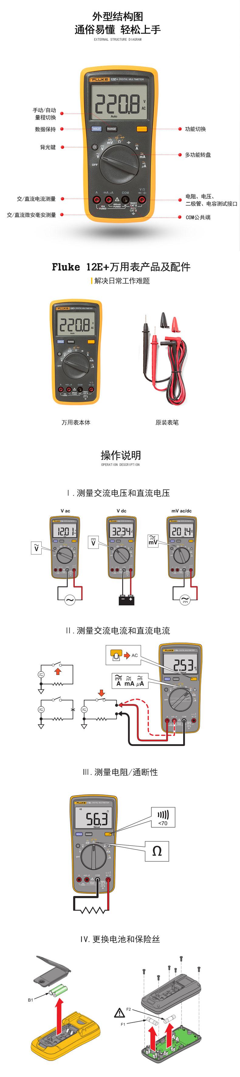 Multímetro multifuncional Fluke 12E+ Multímetro digital multifuncional de alta precisão totalmente automático