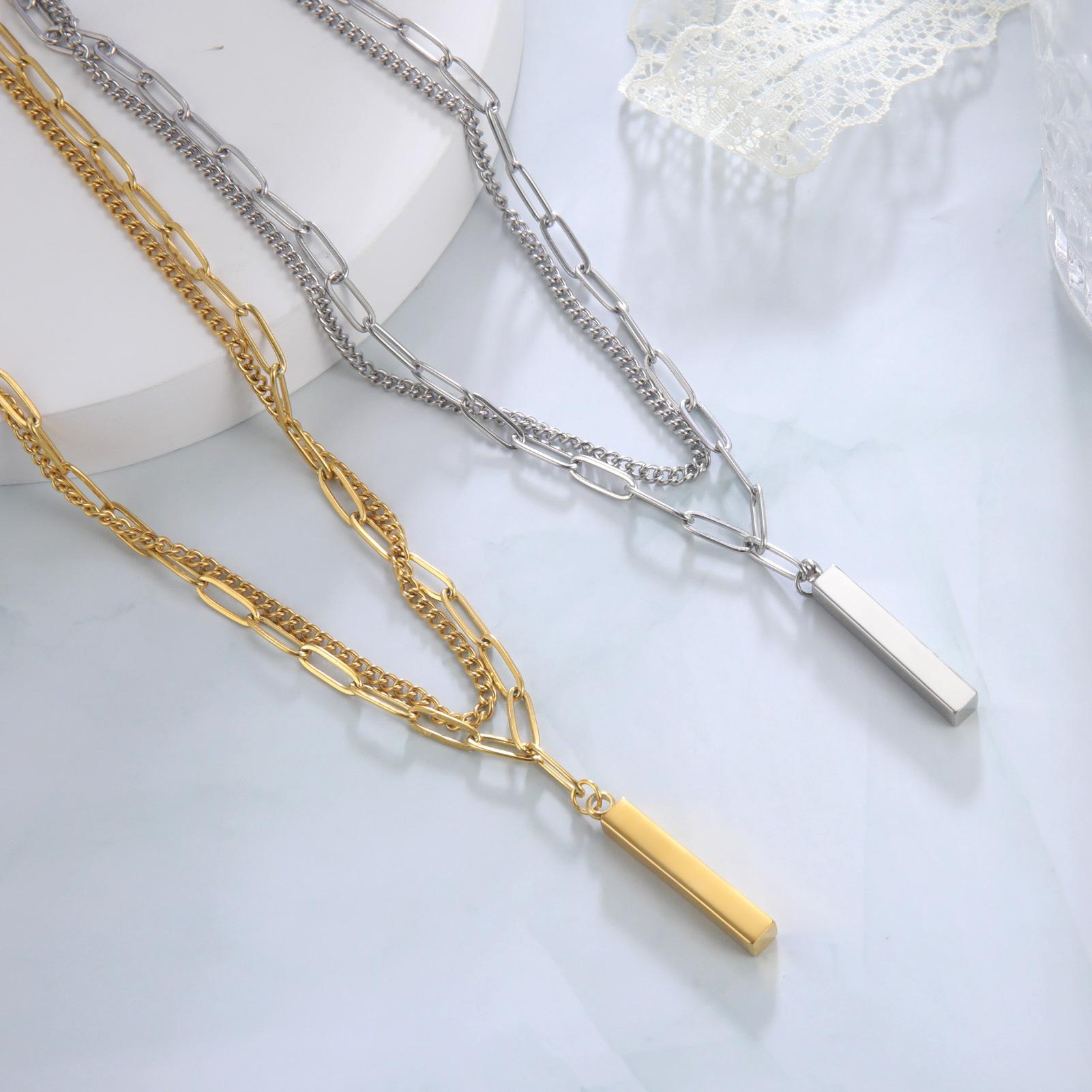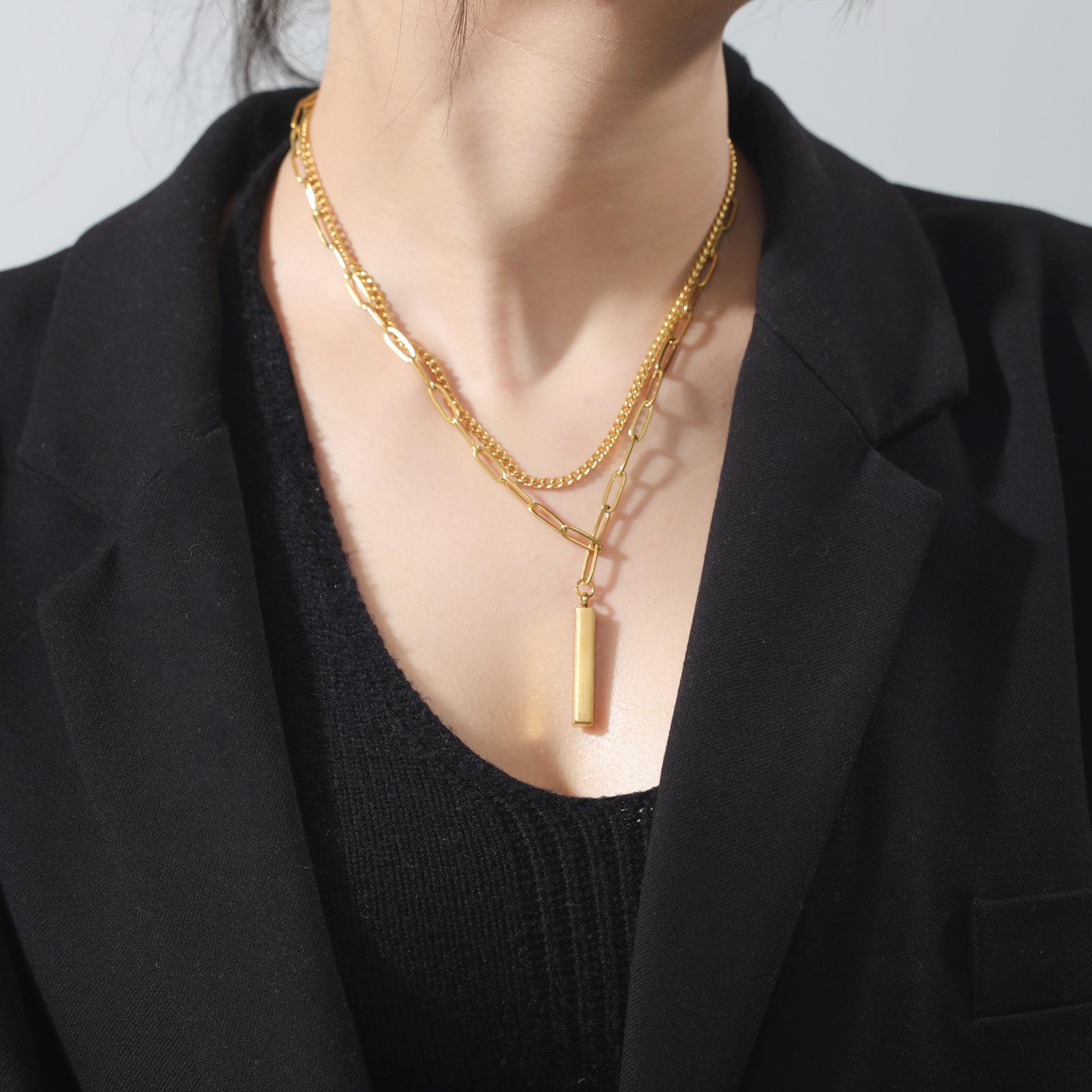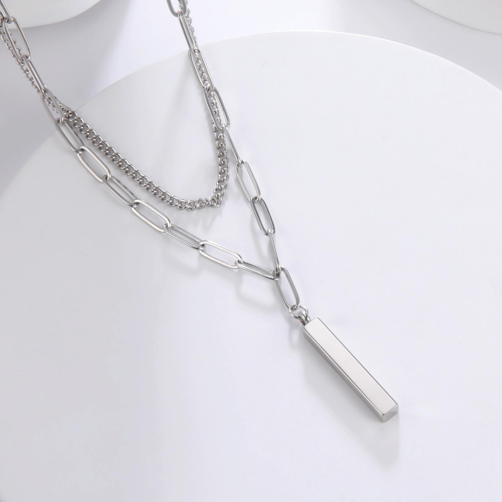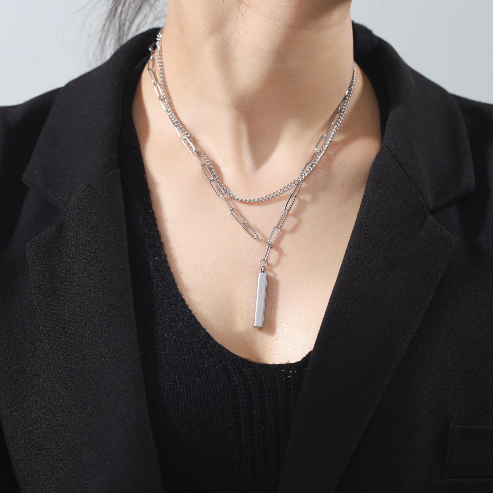Compre Venda quente transfronteiriça popular simples e durável all-match avançado cuboide pingente aço inoxidável titânio aço colar para meninas no atacado no Joom.pro