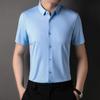 Verão Ice Silk Short-sleeved Shirt Masculino 2024 Novo sem costura não-ferro de negócios Casual Solid Color Lapela Shirt Roupas Masculinas