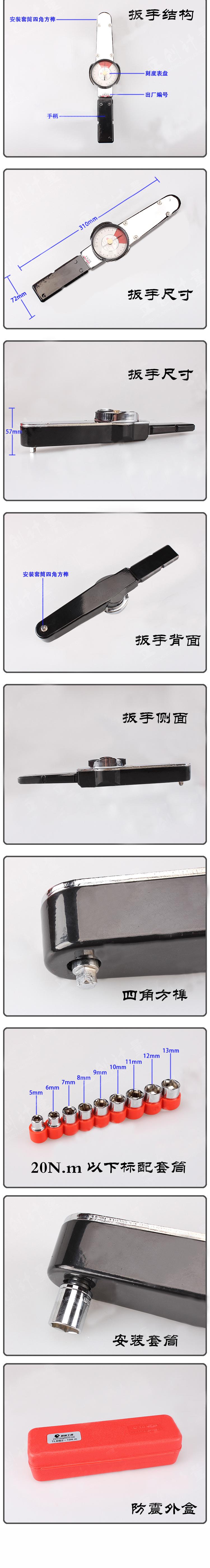 Lembrete especial: Esta série de chaves dinamométricas abaixo de 20 Nm está equipada com 9 soquetes hexagonais de 5-13 mm (ver imagem), outras não estão equipadas e precisam ser adquiridas separadamente.