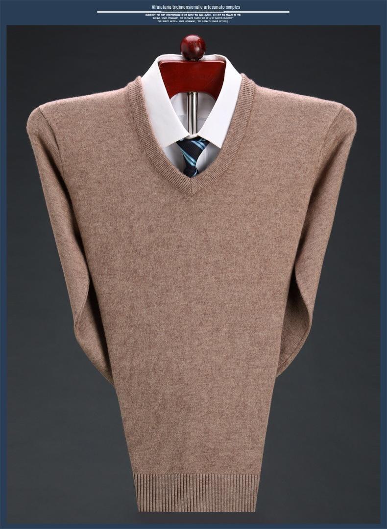 Compre Suéter de lã masculino com gola em forma de coração de frango, camiseta de manga comprida, camisa de base de malha, suéter grosso de meia-idade com decote em V masculino em estoque no atacado no Joom.pro