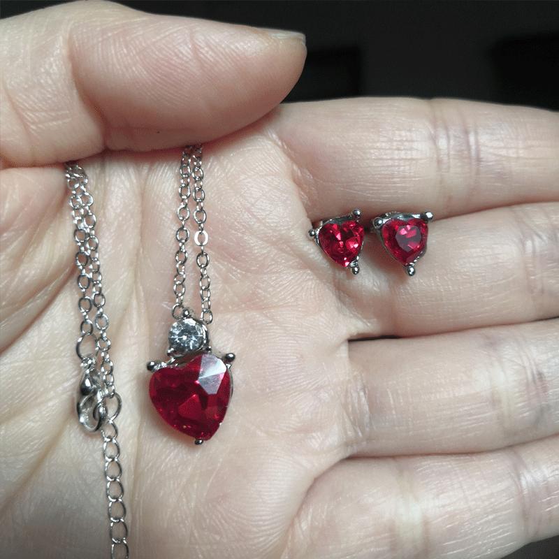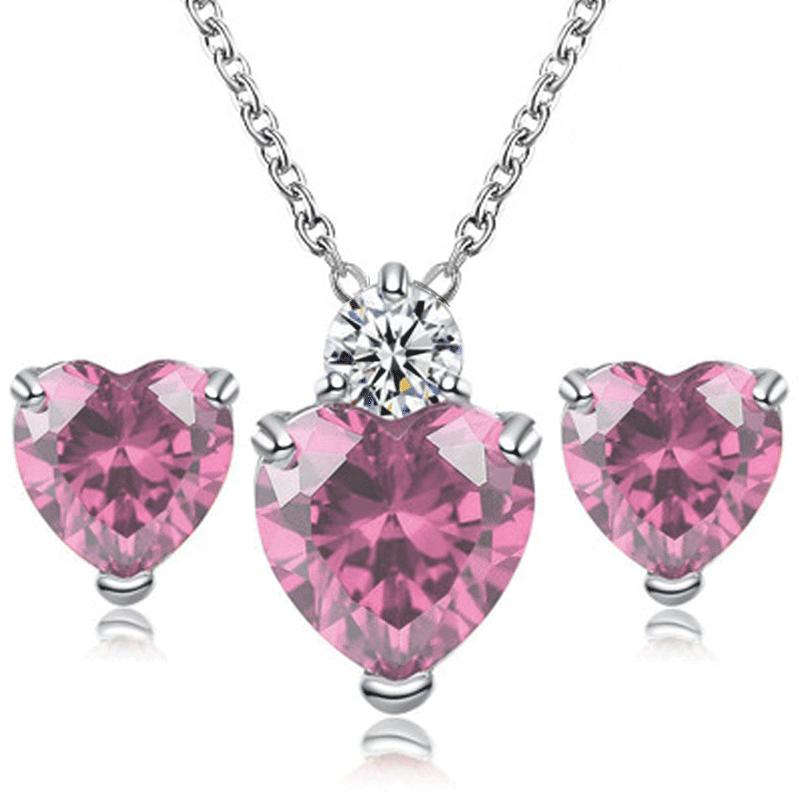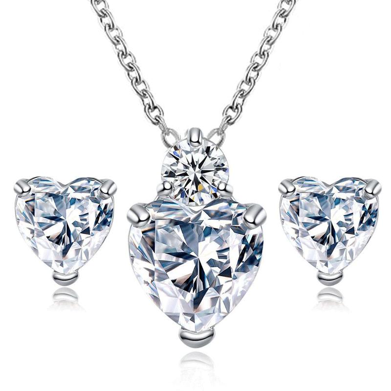 Nome do produto: Conjunto de brincos e colar de amor de zircônia em forma de coração