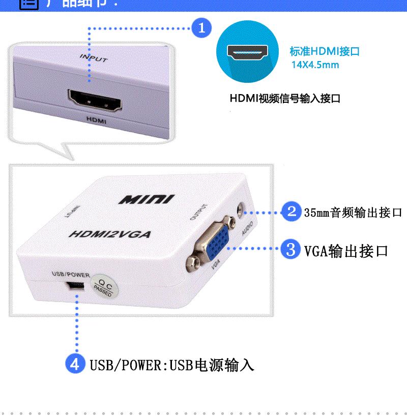 HDMImudarVGAÉ um vídeo em alta definiçãoHDMIConversão de sinal digitalVGASinal analógico eÁUDIOConversor para sinais de áudio analógicos, HDMIO sinal pode ser conectadoPS3,XBOX360,Blu-rayDVD,Decodificador HD, etc.,saídaVGAPode ser conectado a casaCRT/LEDmonitor,TV HDtelevisãoVGA-IN,projetorEntrada VGAespere,Conveniente para nãoTV HDAmigos com HDTV podem resolver suas preocupações temporárias.