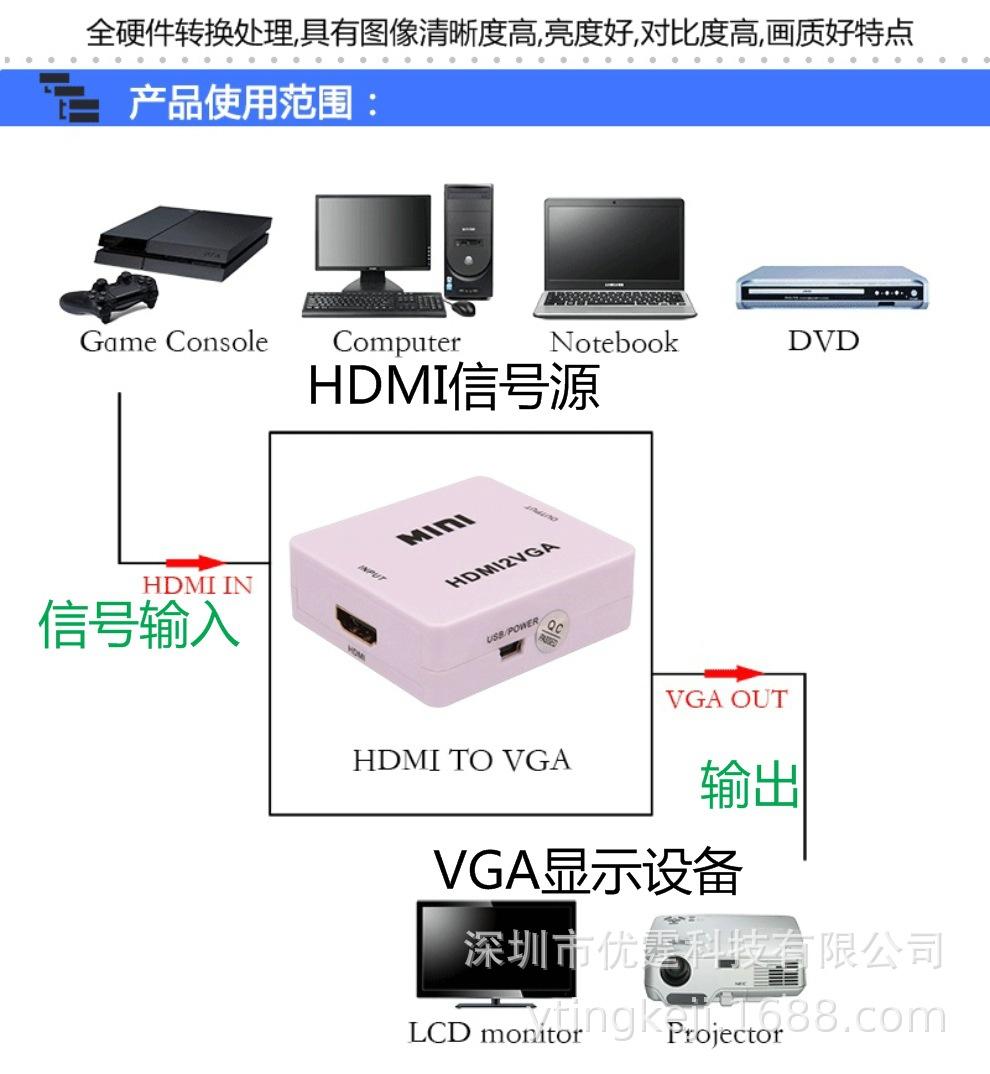 【Nome do Produto】miniHDMImudarVGAconversorMINI HDMI2VGAconversorHDMI para VGA 1080P