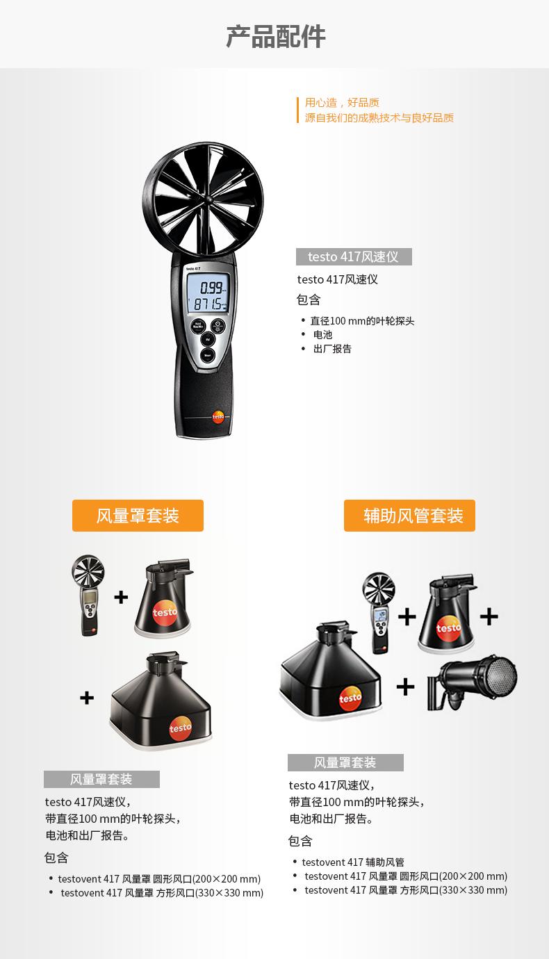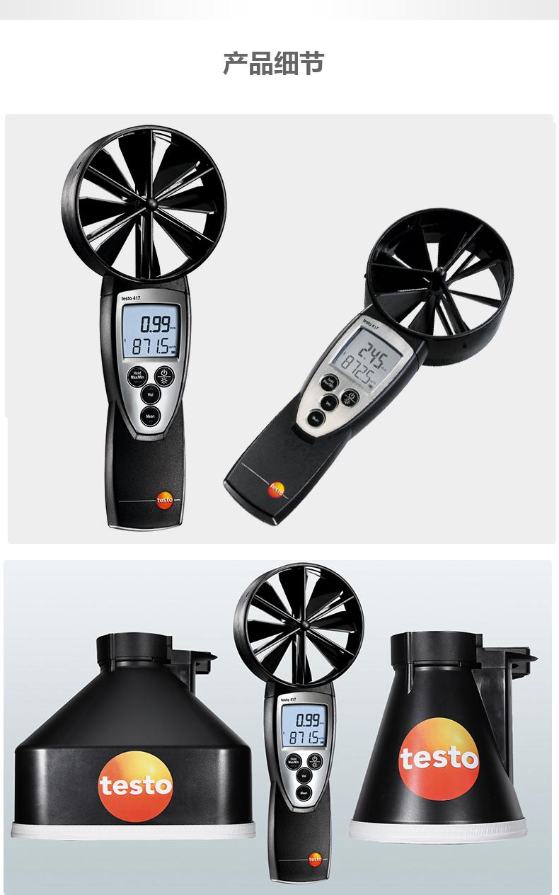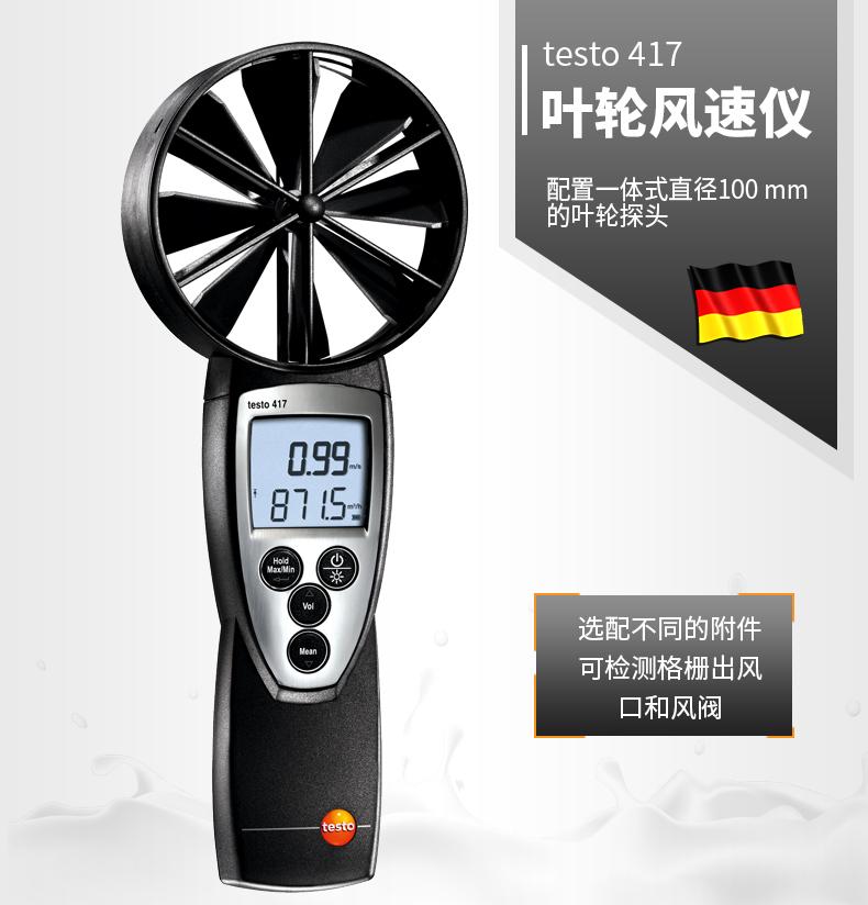 Anemómetro testo 417 con sonda de impulsor Ø 100 mm, pilas e informe de fábrica.