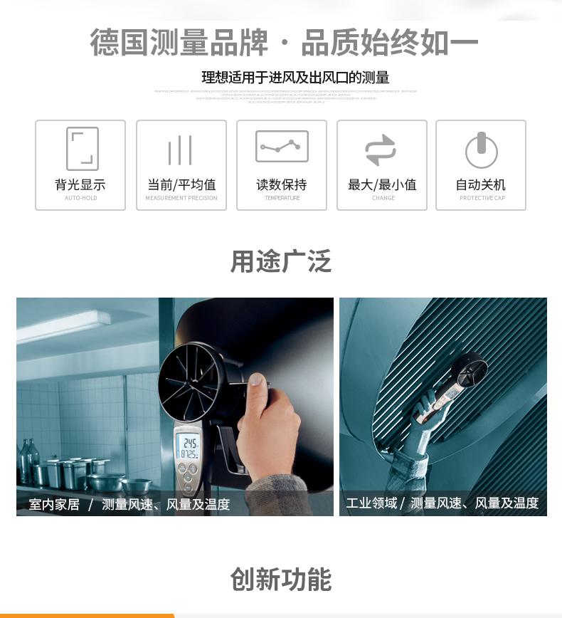 El instrumento tiene funciones de cálculo de período de tiempo y promedio multipunto para calcular los valores promedio del volumen de aire, la velocidad del viento y la temperatura.