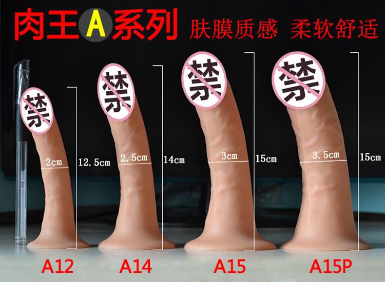 Las características del pene de la serie Meat King A son: sin testículos, suave y delicado, ¡sin sensación de cuerpo extraño! Esta serie tiene una gama completa de estilos, adecuada para mujeres jóvenes, suave y cómoda, sin sensación de cuerpo extraño al insertarse. Actualmente es el más suave y también se puede insertar. Tiene una película amigable con la piel en la superficie, que se siente delicada y suave, no se pega a las manos, no se decolora, no se desprende y no tiene olor. El A12 extrafino tiene 2 cm de grosor, adecuado para usuarios primerizos o aquellos con casi nada de experiencia, es realmente cómodo. El A14 y el A15 son adecuados para chicas que prefieren tamaños pequeños. El A15P tiene 3.5 cm de grosor, básicamente un tamaño mediano, adecuado para la mayoría de las mujeres.