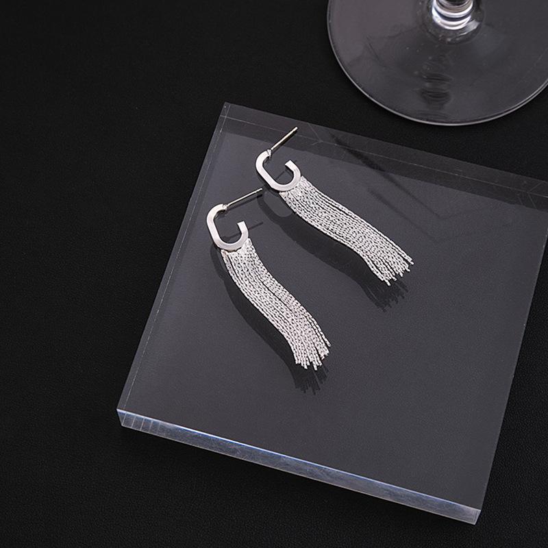 Compre Brincos de borla de corrente em forma de C de alta qualidade, brincos curvos flexíveis de luxo leve e americano estilo frio, brincos de cachoeira longos estilo frio no atacado no Joom.pro