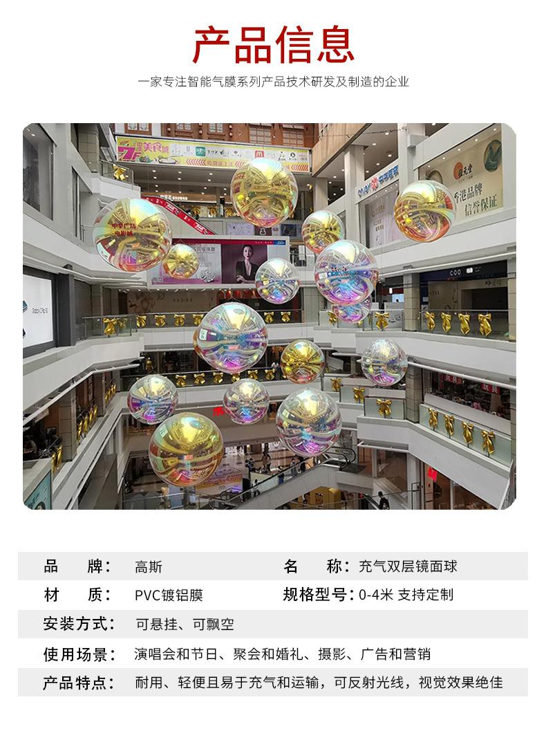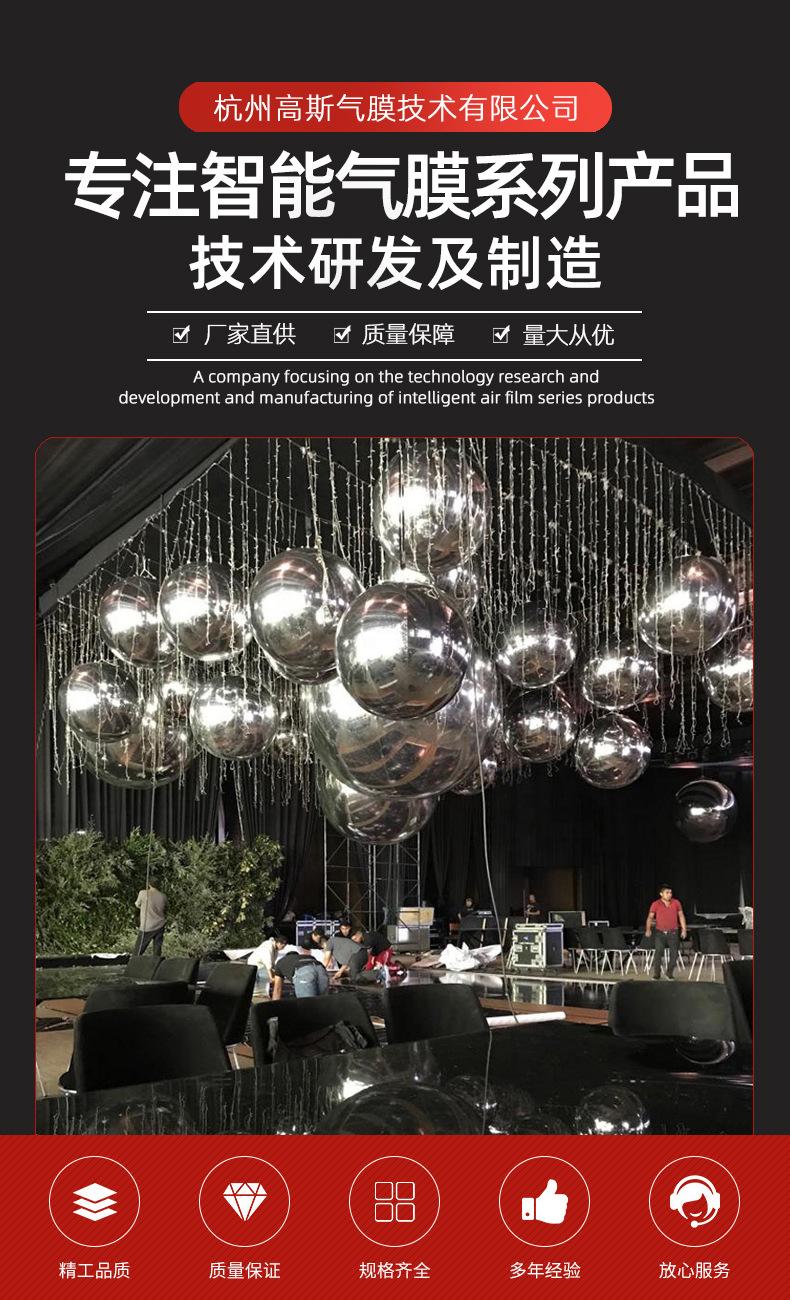 2.Superfície do espelho:Revestimento externo do laser espelhado e revestimento interno de PVC ecologicamente correto, tornando-o reflexivo e capaz de produzir efeitos de luz e sombra incríveis. Cada costura é bainhada para evitar estouro, delaminação e vazamento de ar.