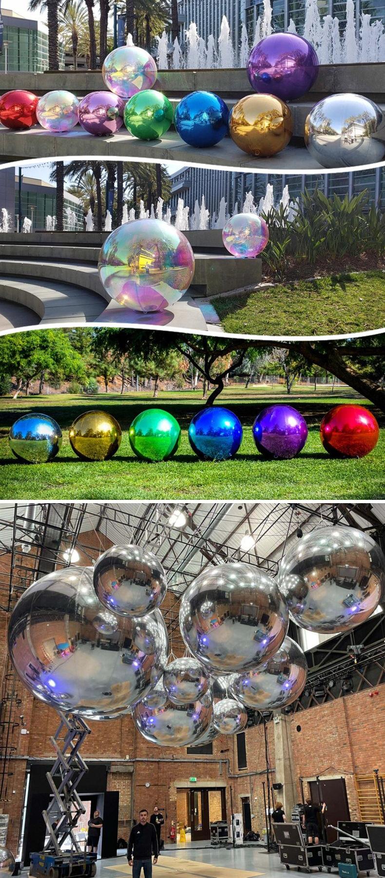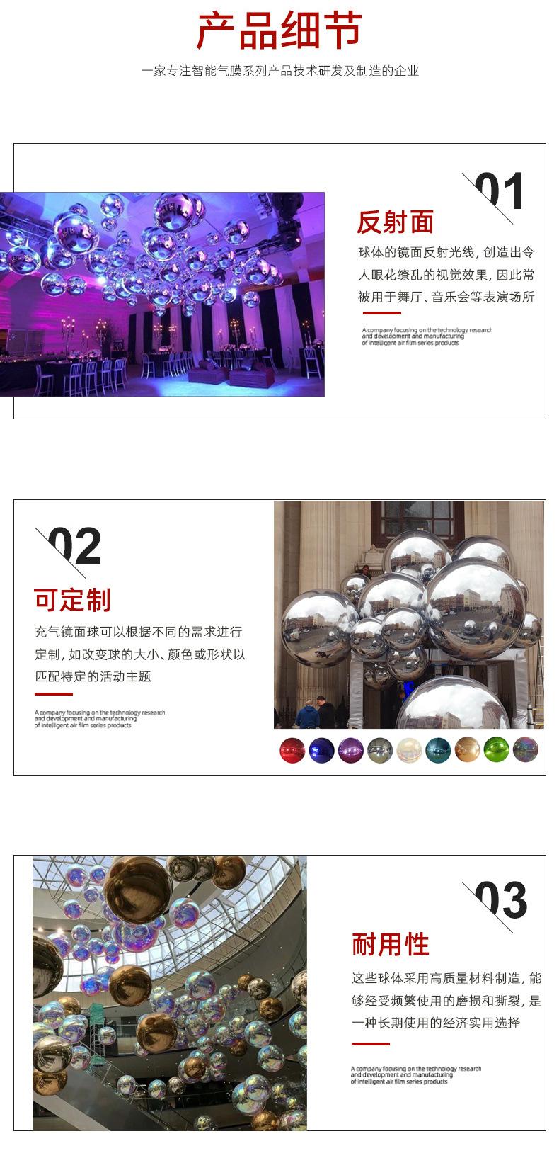 3.Cores e efeitos: As bolas de espelhos infláveis podem ser encontradas em diferentes cores e formatos, e às vezes são equipadas com luzes LED ou outras fontes de luz para realçar o efeito visual.