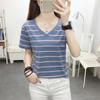Compre Camiseta feminina de manga curta, slim fit, listrada, decote em V, para o verão, para cobrir a barriga, para meninas gordinhas, tamanho grande, para mães de meia-idade no atacado no Joom.pro