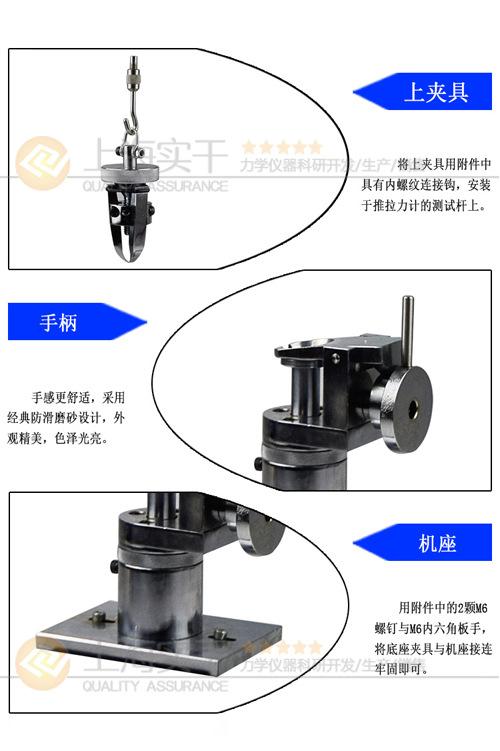 Série SGNL de testador de tração de fivela de cinco garras da Shanghai Shigan FactoryConfigurávelSGNK、SGFMedidores de força push-pull e pinças, incluindo o testador de tensão de botão de cinco garras, são usados para medir a força de fixação de botões ou a força destrutiva de botões quando são destacados da roupa. É um padrão importante para detectar a força de fixação de botões e botões. O testador de tensão de botão de cinco garras é especialmente importante no design e fabricação de roupas para bebês e crianças.