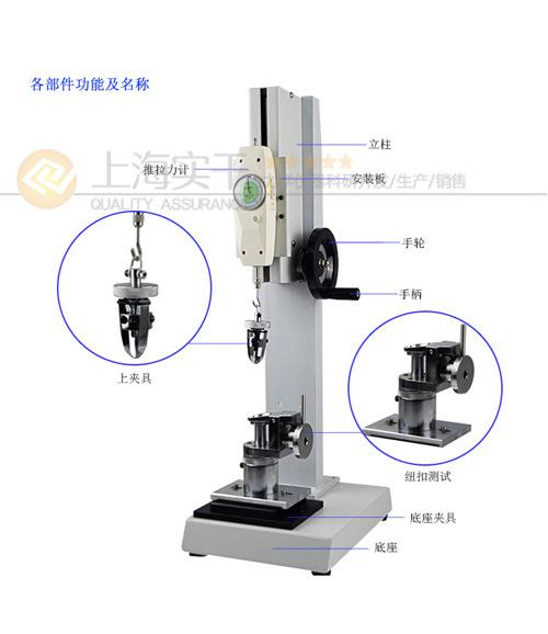 O método de teste deste instrumento é usado para medir a força de tração vertical de botões e roupas sem puxar os botões das roupas.