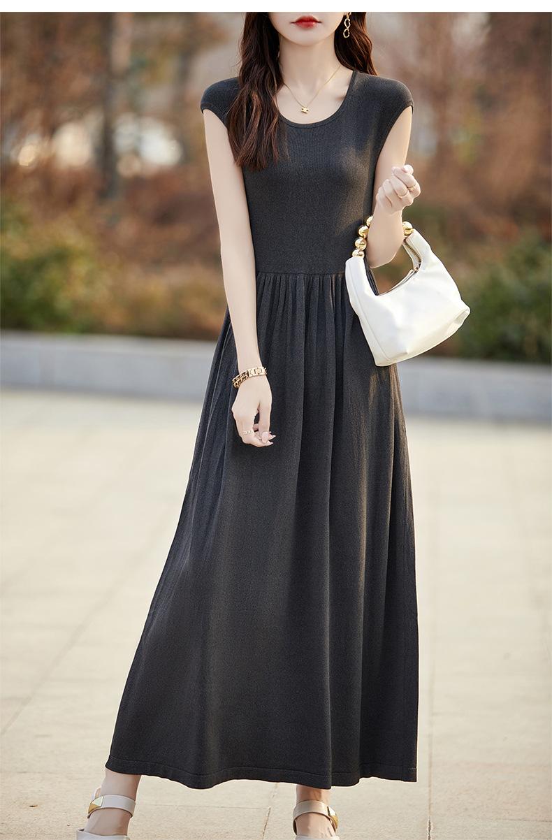 Compre 2024 verão novo U-collar francês A- linha Slim-fit sólido cor costura costura Hepburn estilo mangas vestido colete sem mangas no atacado no Joom.pro