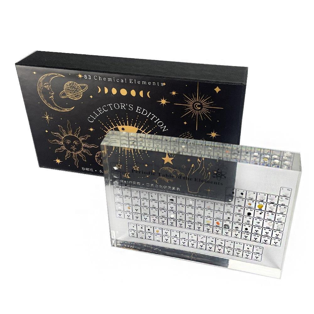 Objeto acrílico incorporado com elementos químicos reais, tabela periódica de elementos químicos, presente de elemento real, objeto acrílico incorporado com elementos químicos reais
