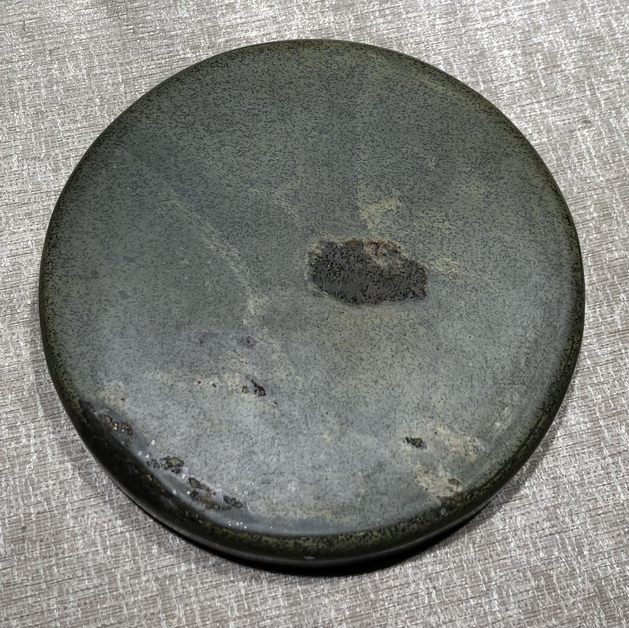 Esta pedra de tinta é feita de material antigo com padrão de ovas de peixe, prático e fácil de enviar, com uma capa de madeira diversa