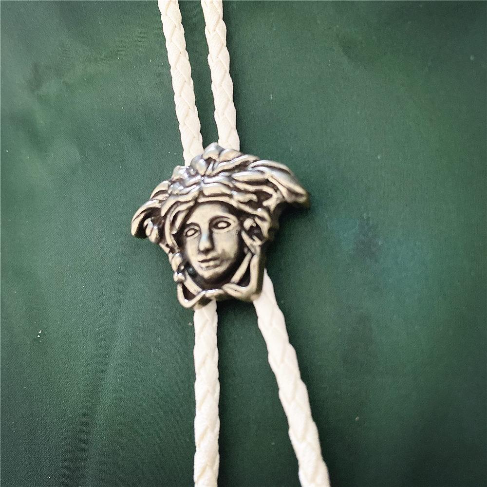 [Cor do acessório]: corda PU branca + cabeça de monge de bronze