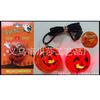 1) Colar de cabeça fantasma de abóbora, a abóbora emite 2 luzes vermelhas, a cabeça fantasma emite 2 luzes azuis