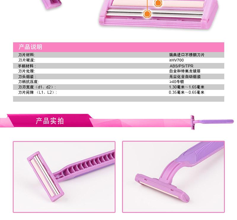 | Especificação: 1 peça/saco | Material da lâmina: aço inoxidável cromado | Ingredientes da tira lubrificante: enriquecido com vitamina E e Aloe Vera | |