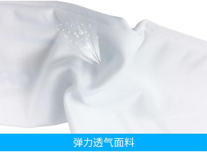 1. O tecido é feito de tecido de Lycra elástico e respirável, que tem a função de absorção de umidade e eliminação de transpiração! O tecido é composto por 88% poliéster e 12% elastano.