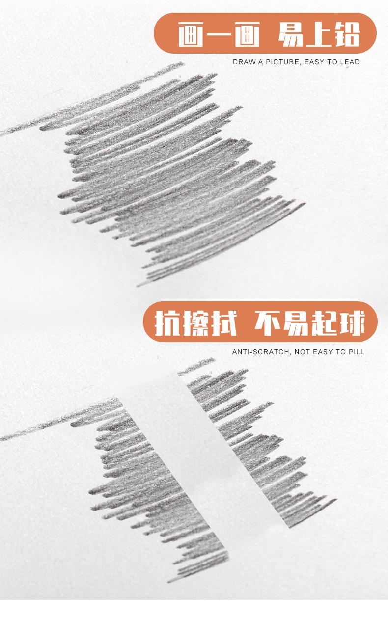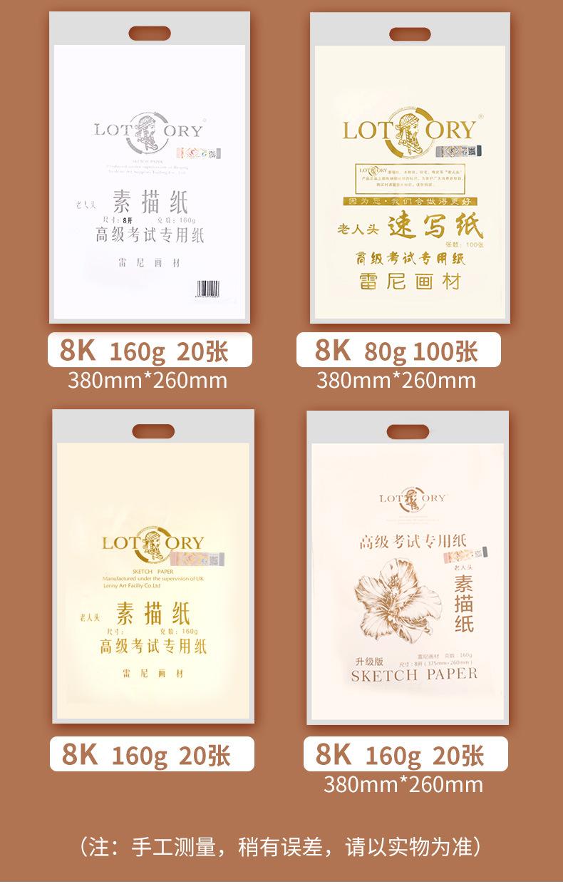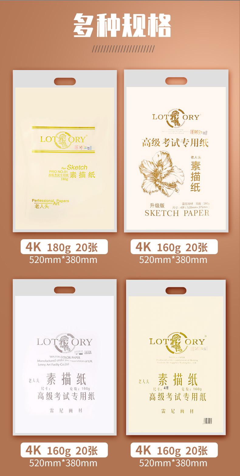 | Avaliação de uso | Função anti-falsificação do papel de desenho da cabeça do velho: Há um código antifalsificação na embalagem externa. Raspe o código antifalsificação e ligue ou envie uma mensagem de texto para verificar a autenticidade! A fibra do papel é relativamente grossa e a superfície não possui linhas horizontais prensadas à máquina, mas sim textura natural. Possui forte capacidade de absorção de chumbo.。 |