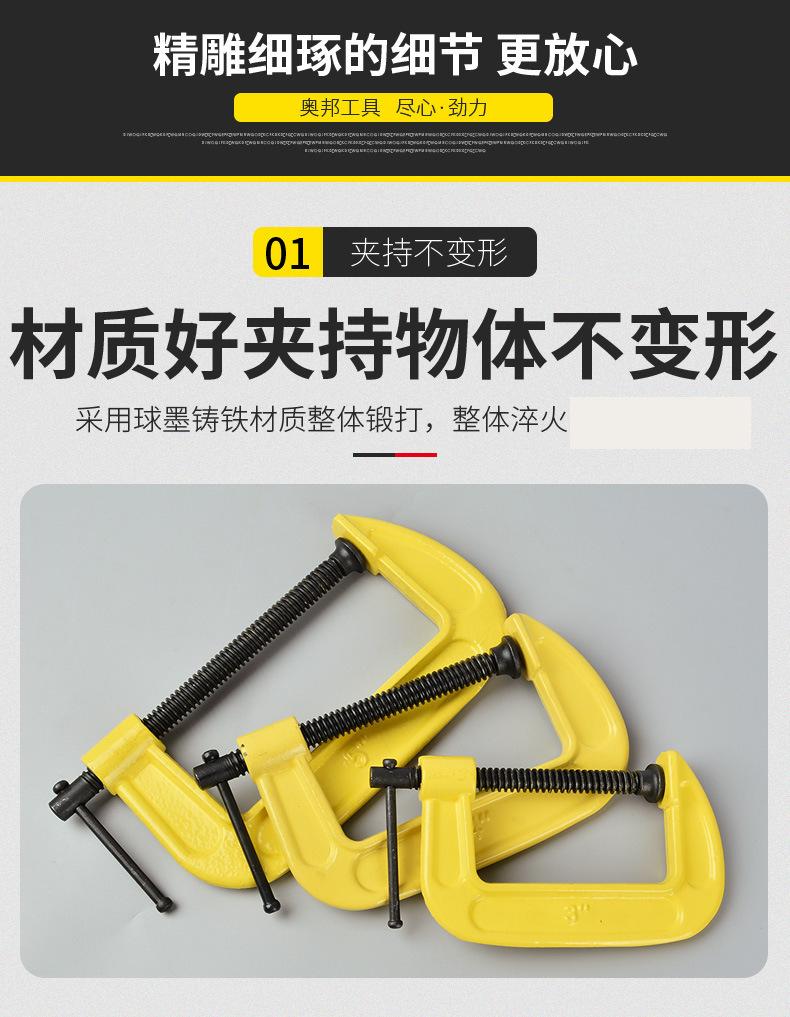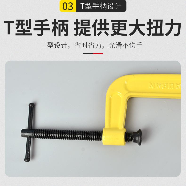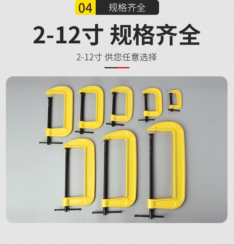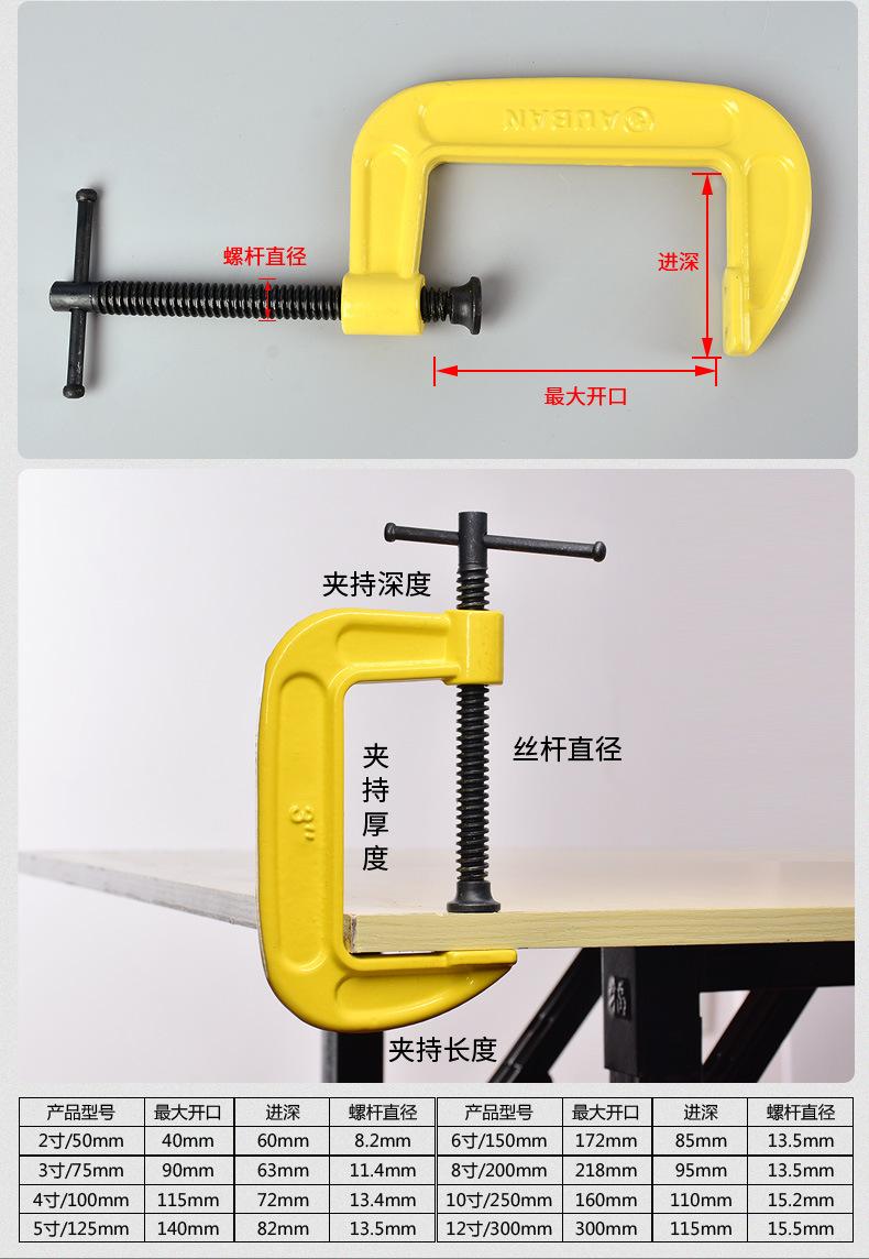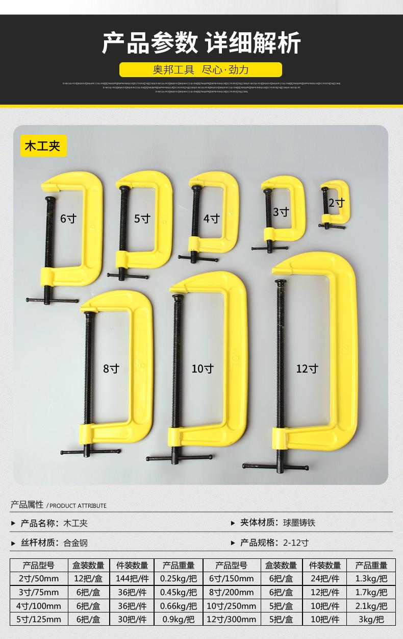Caro(a): Este é um grampo para carpintaria de médio a alto padrão. O material e o acabamento são muito finos. É uma ferramenta robusta e durável. Especificações do modelo: 2 polegadas, 3 polegadas, 4 polegadas, 5 polegadas, 6 polegadas, 8 polegadas, 10 polegadas, 12 polegadas.