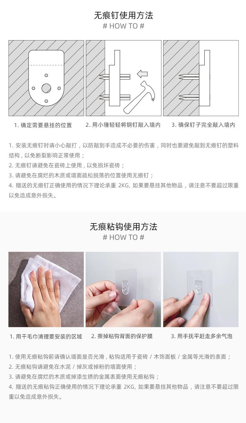 Este estilo proporcionará un servicio de gancho adhesivo gratuito a partir del 8 de junio de 2022, pero dado que el gancho adhesivo no se puede usar en todas las paredes, solo se limita a superficies lisas como azulejos, paneles de chapa de madera y metales. No lo use en paredes polvorientas o rugosas (consulte las instrucciones en la parte inferior de la página para los pasos de uso específicos).
