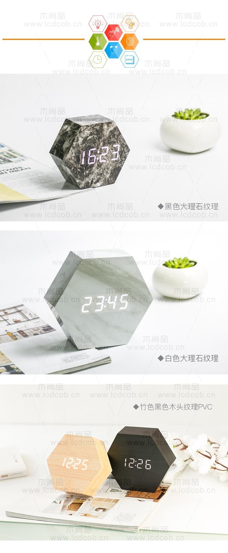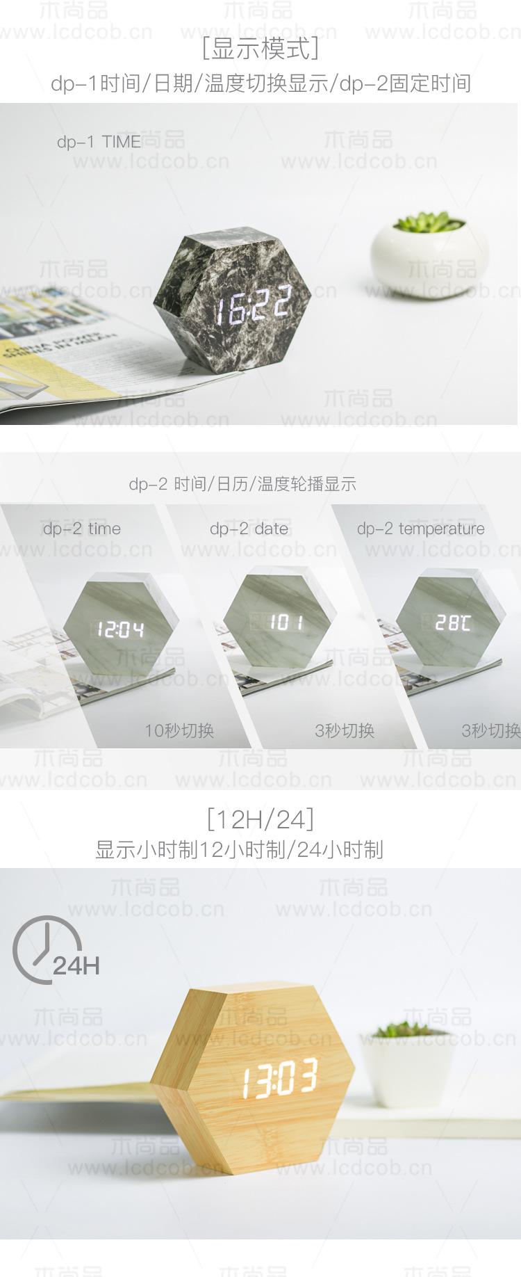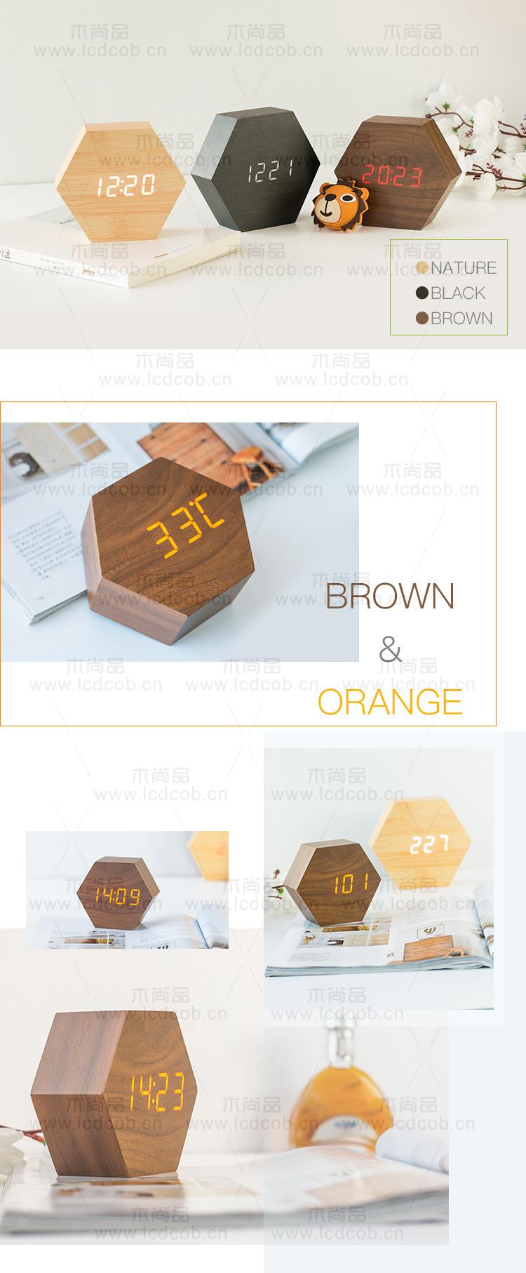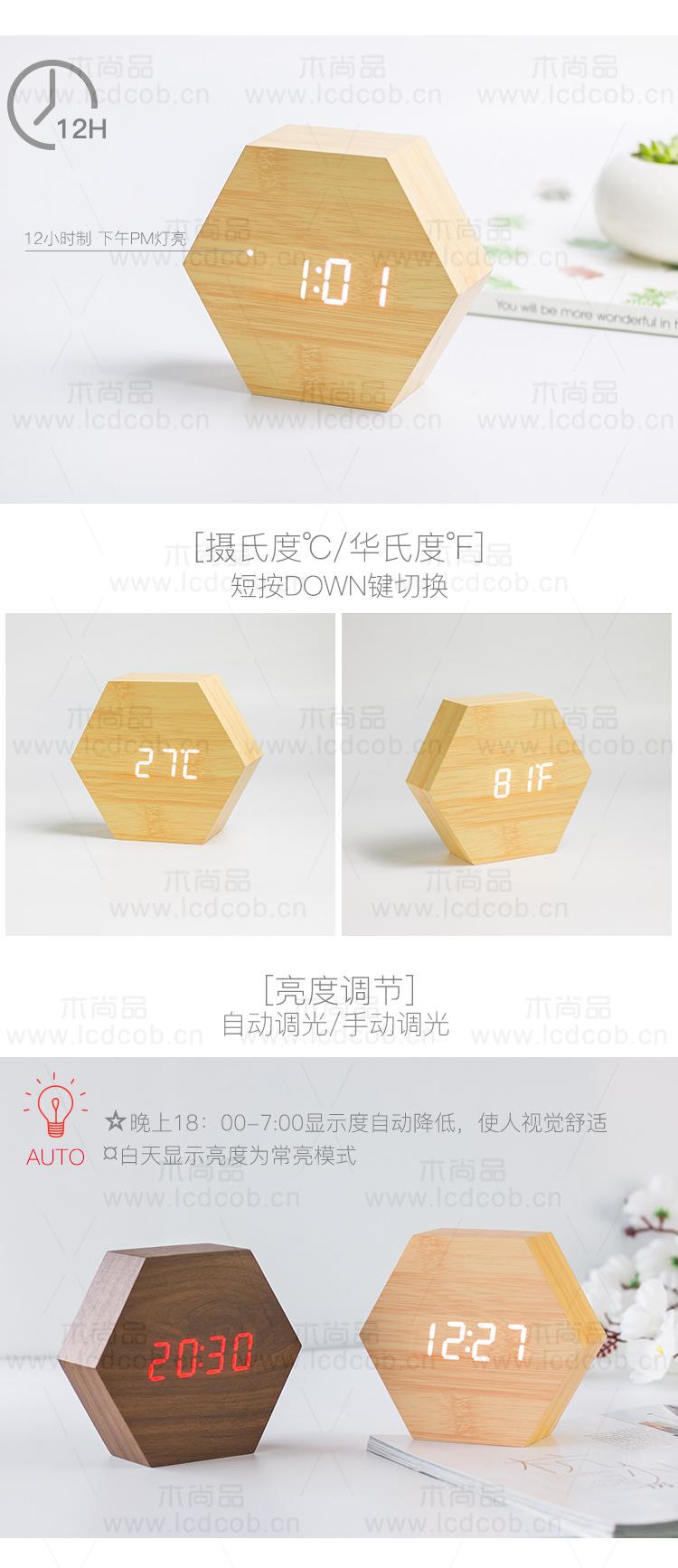 --Display digital LED, depois de ligar o interruptor, a luz LED suave será exibida na superfície lisa de madeira,