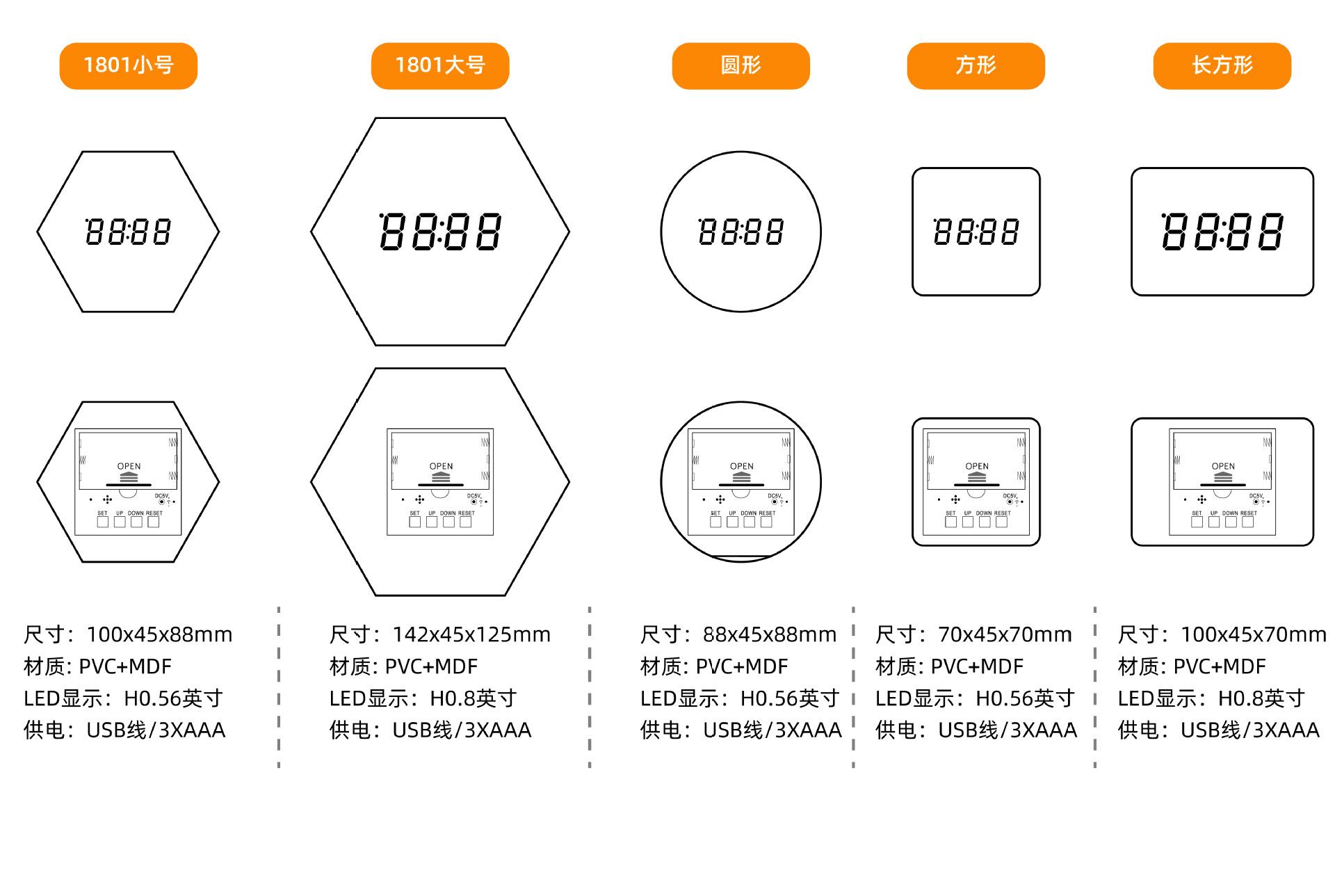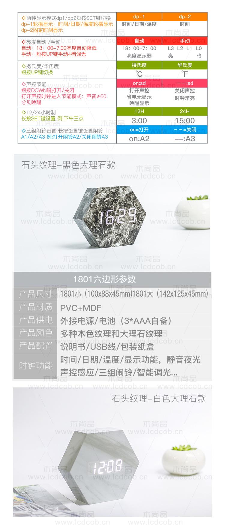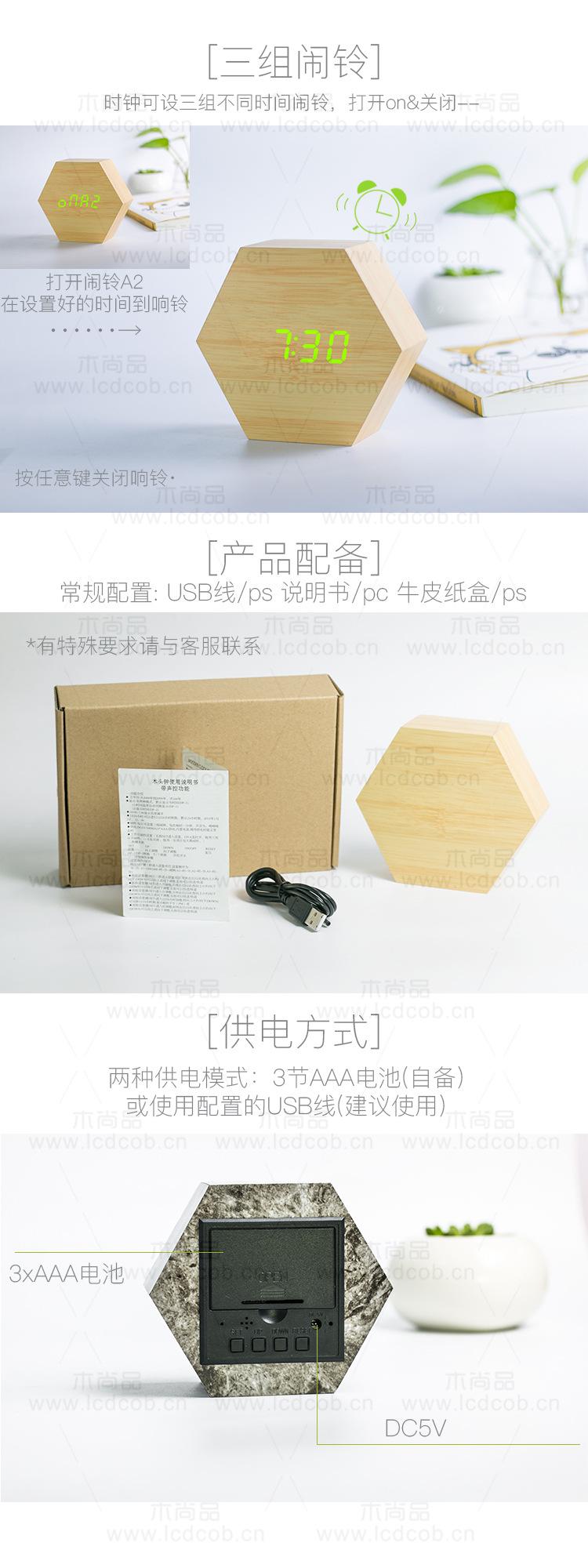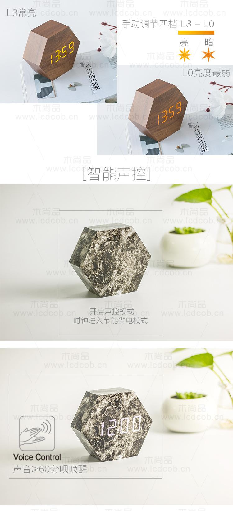 --Display digital LED, depois de ligar o interruptor, a luz LED suave será exibida na superfície lisa de madeira,