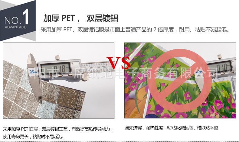Este produto é um campeão de vendas no Japão e na Coreia do Sul, feito de filme PET aluminizado. O produto é opaco, portanto, quando aplicado a uma parede, a cor de base da parede não aparecerá, ao contrário dos adesivos à prova de óleo transparentes comuns no mercado. Pode ser usado como um revestimento decorativo e à prova de óleo para paredes de fogão de cozinha, paredes de azulejos cerâmicos ou superfícies de vidro. É bonito e generoso, e pode eliminar o incômodo de esfregar manchas de óleo. Geralmente, uma folha pode ser usada por cerca de 1 ano. Ao removê-lo e substituí-lo, aquecer com um secador de cabelo garantirá que nenhum resíduo de adesivo fique na parede. É econômico e prático, e ótimo custo-benefício.
